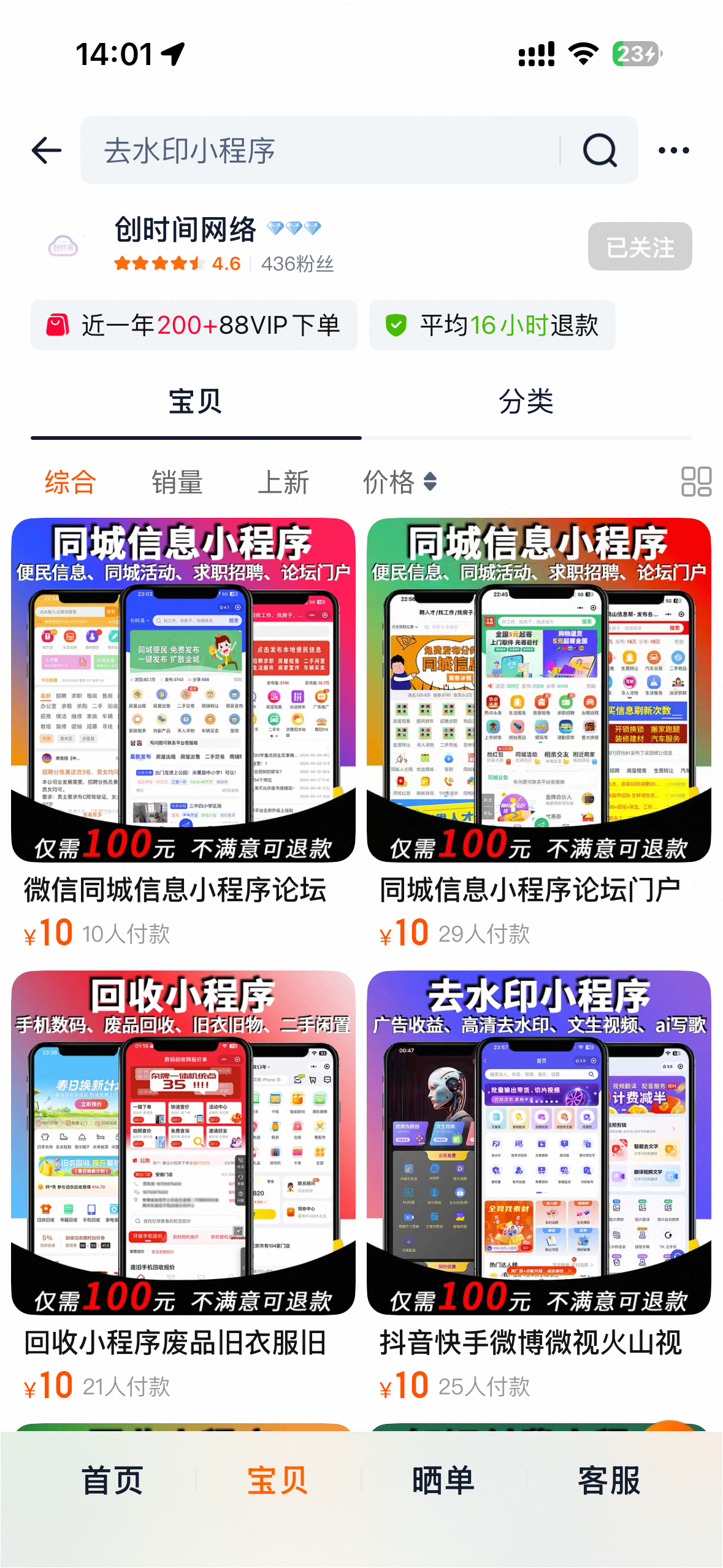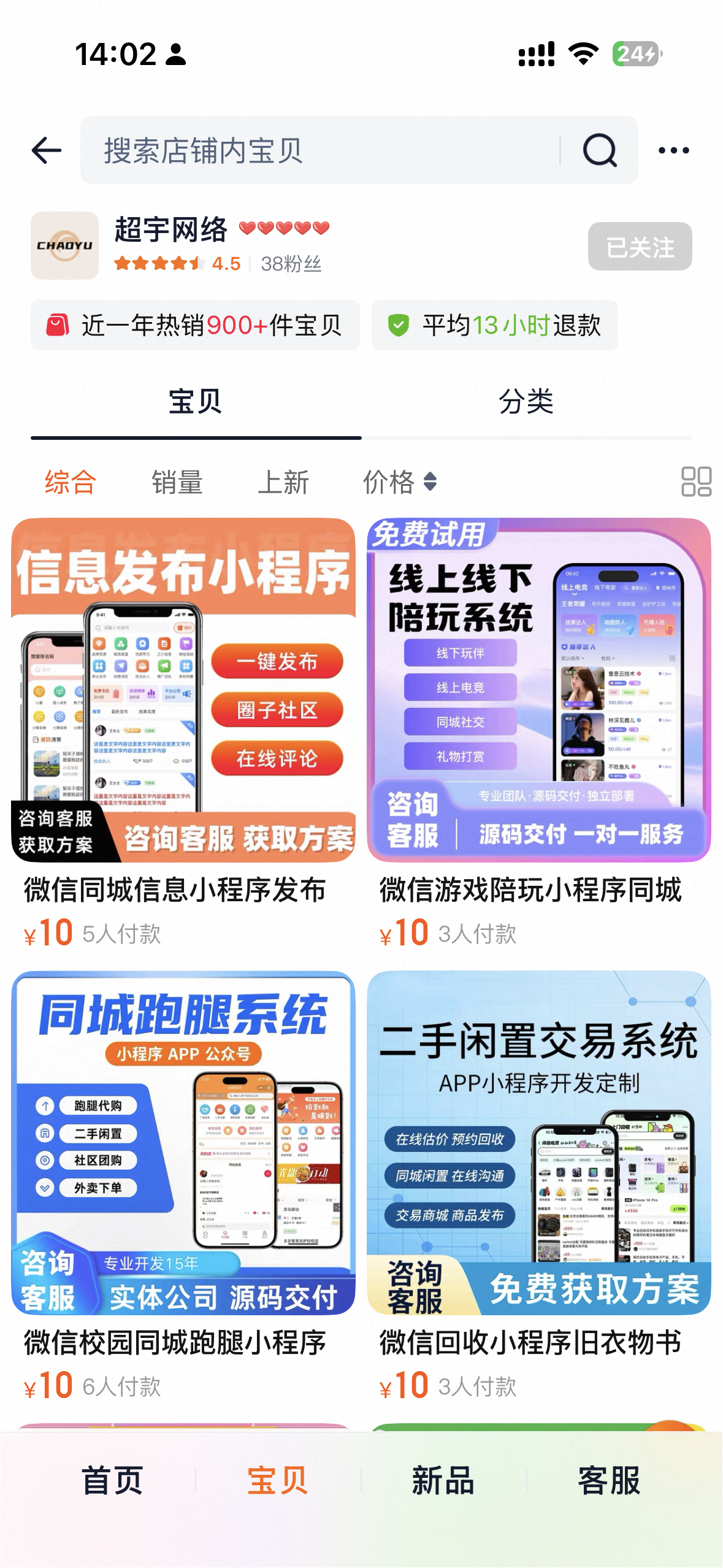 最近想搭建一個同城信息發布小程序,淘寶上找了一家專門做小程序搭建的店。